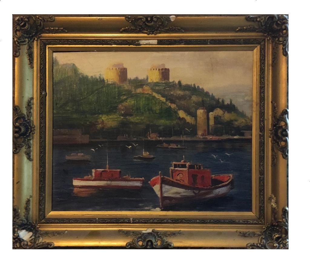 53x63 cm 1890 yili Sanatçisi bilinmeyen.Istanbul bogazi yagli boya tablo.